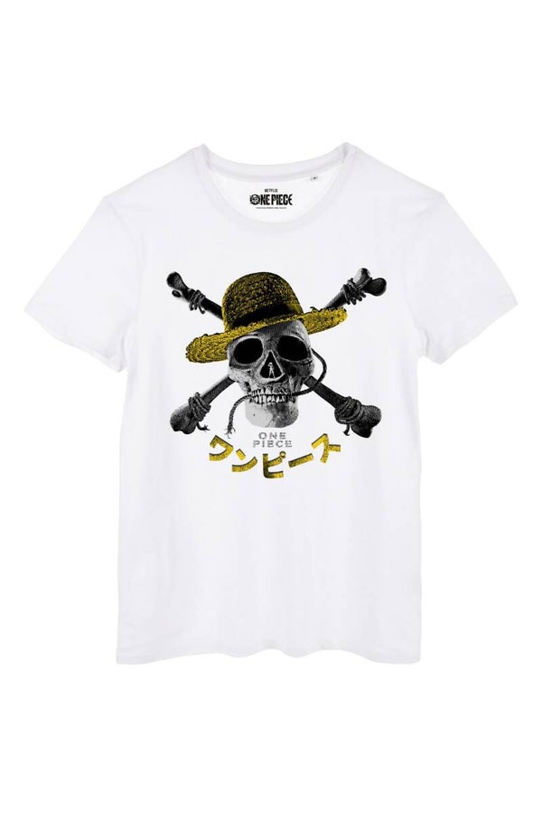 T-SHIRT ONE PEACE - Tête de mort - CHAPEAU DE PAILLE JAUNE